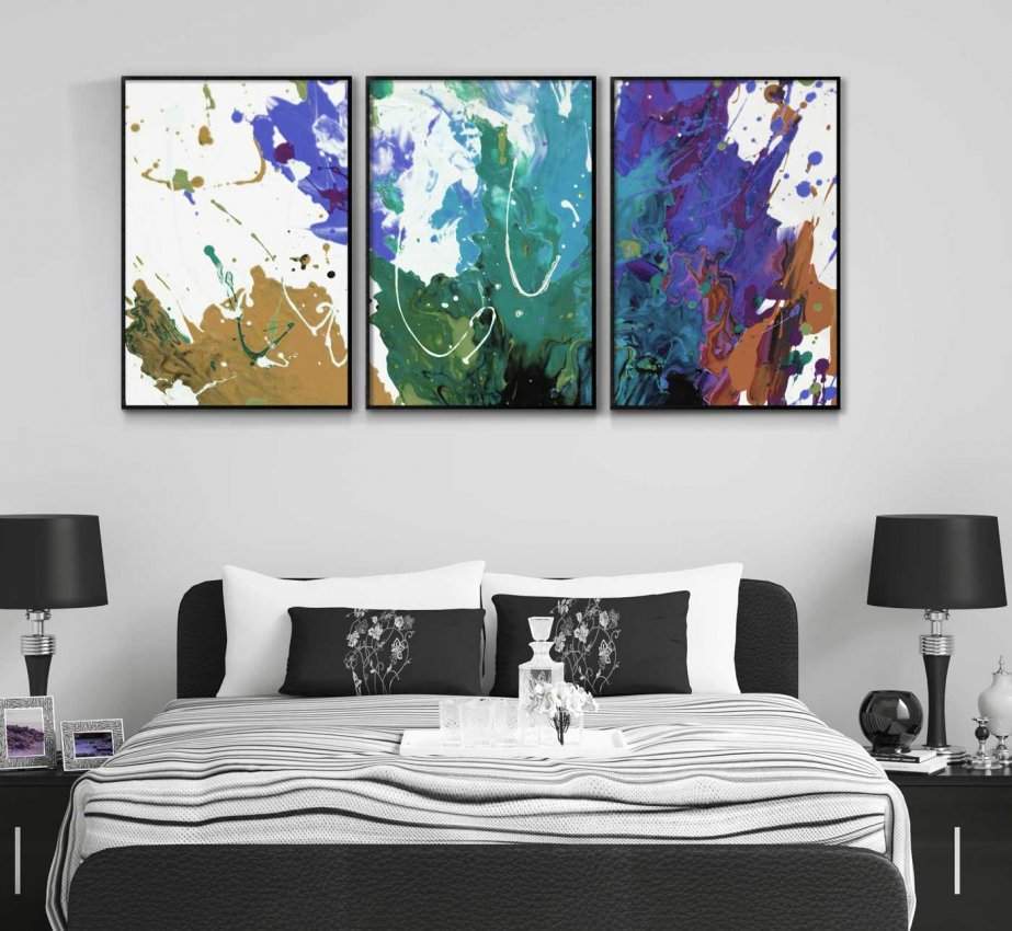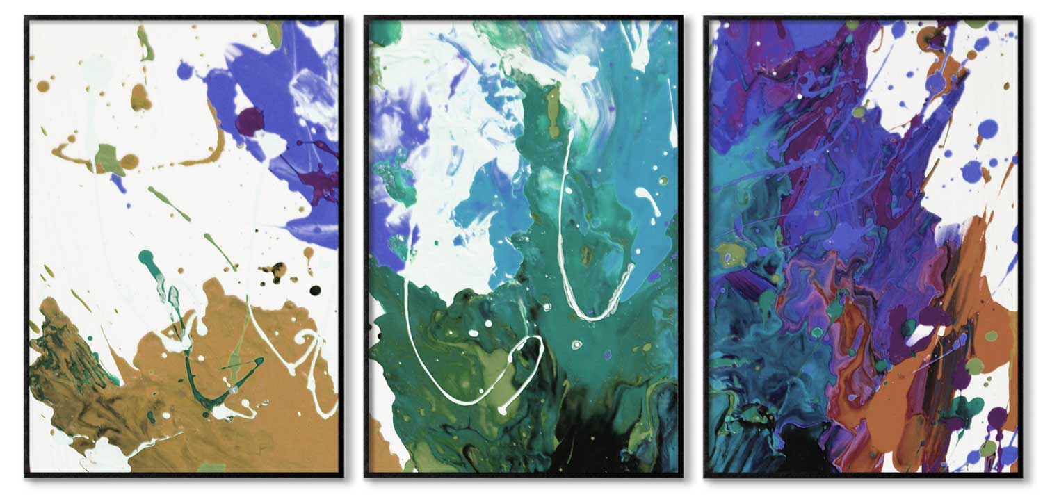 Färgglada tavlor för hela hemmet. Modern konst med abstrakt målning i sköna färger. En snygg uppsättning tavlor i tre delar som passar fint att ramas in på väggen i både stående och liggande riktning likt bilderna.