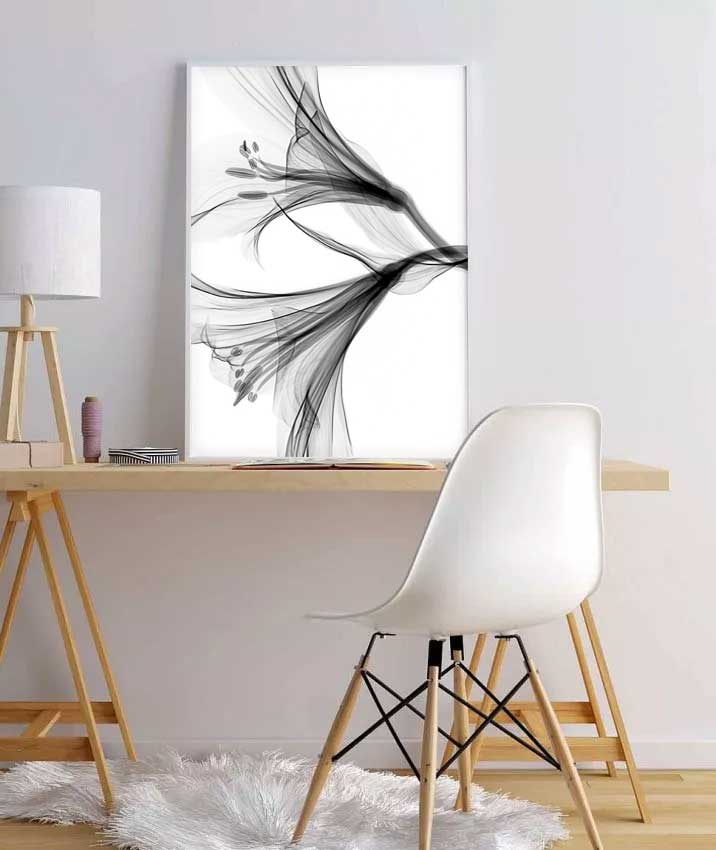 Vacker och enkel poster med minimalistiskt motiv på en blomma med vit bakgrund. En unik affisch i liggande läge som passar snyggt på väggen i trendiga hem med stilren inredning. Matchar bra ihop med andra tavlor i svartvitt och blommotiv i gråskala.