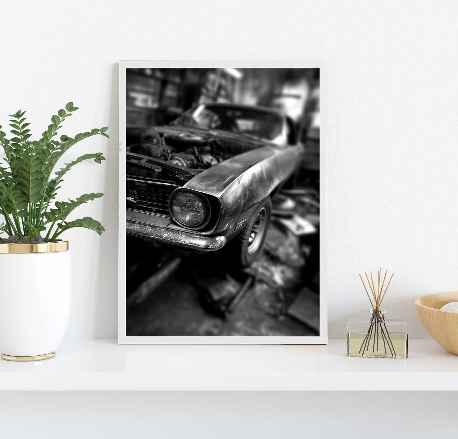 Affischen passar perfekt i garage, kontor, vardagsrum, verkstäder eller hos bilentusiaster som uppskattar vintage design och klassiska fordon. Den retroinspirerade stilen skapar ett varmt och autentiskt uttryck som ger karaktär åt väggen. Postern fungerar utmärkt både som ett ensamt blickfång och som en del av en genomtänkt tavelvägg. Ett självklart val för dig som vill addera klassisk bilkultur, nostalgi och personlighet till din inredning.