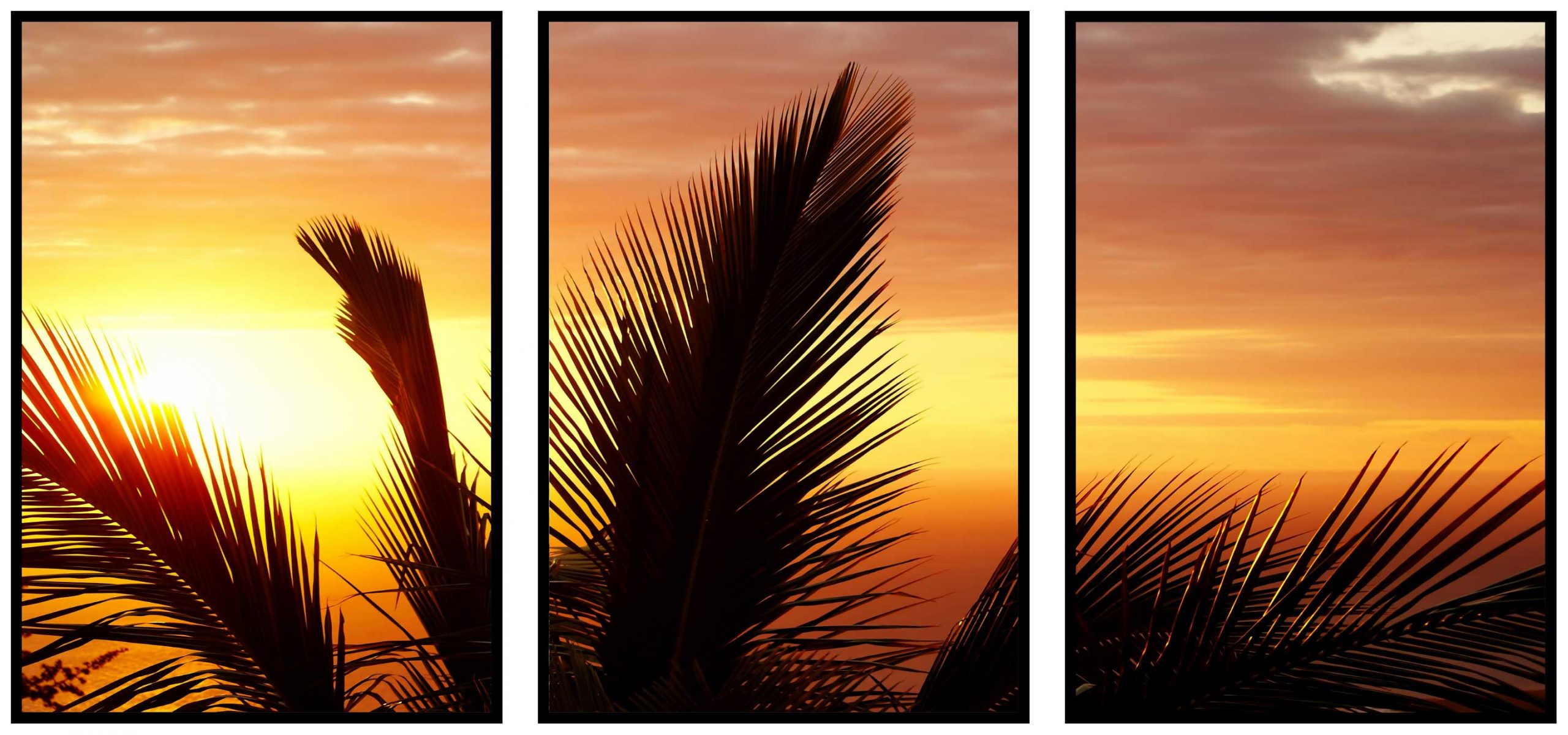 Palmer i silhuett & solnedgång – Perfect trio poster set
