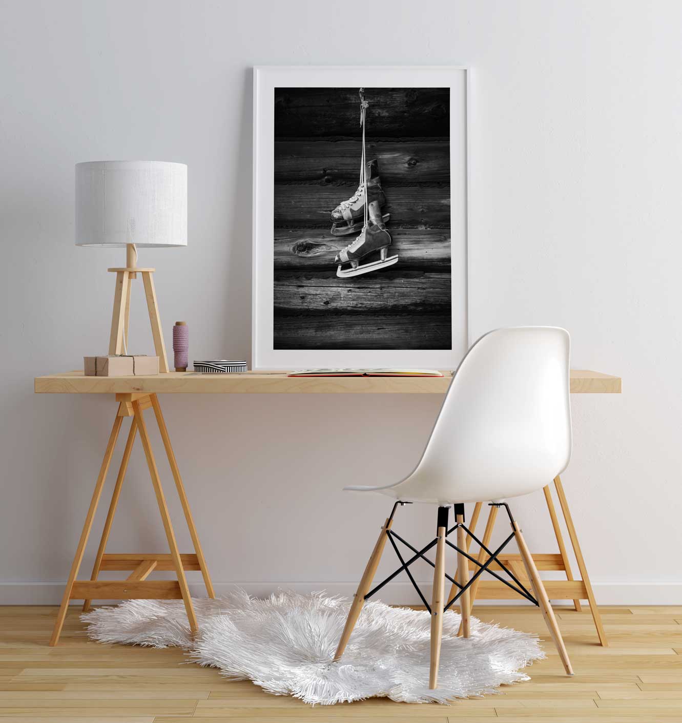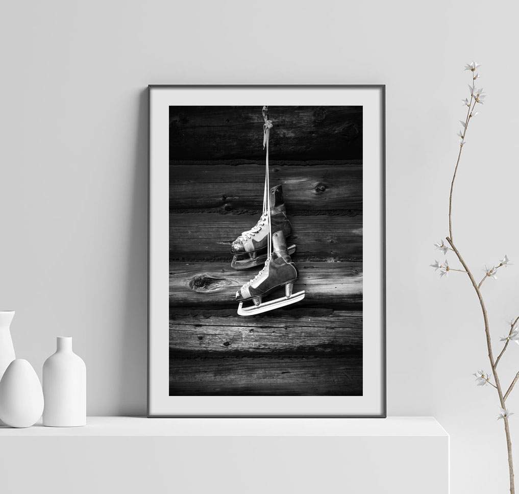 Retro skridskor poster i gråskalajanuari 26, 2022